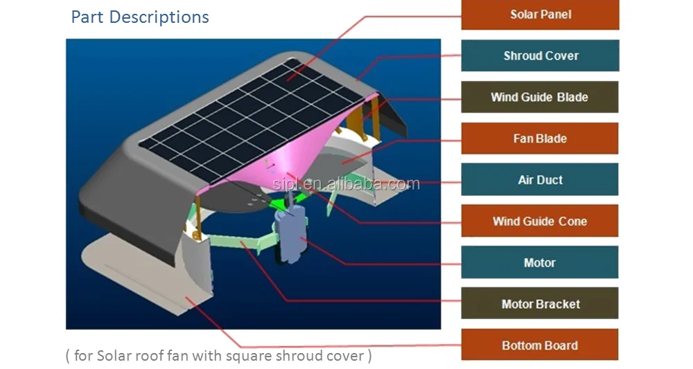 The interior structure of solar roof fan with round shroud cover is the same as the one with square shroud cover.