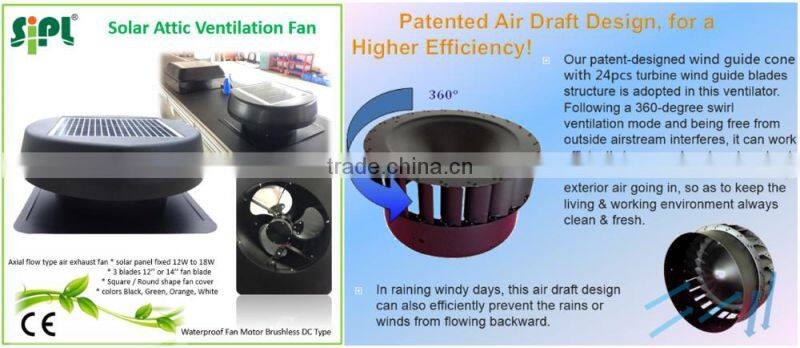 12 watt round shape Solar Attic / Gable Ventilation Fan with 12 inch aluminum fan blades