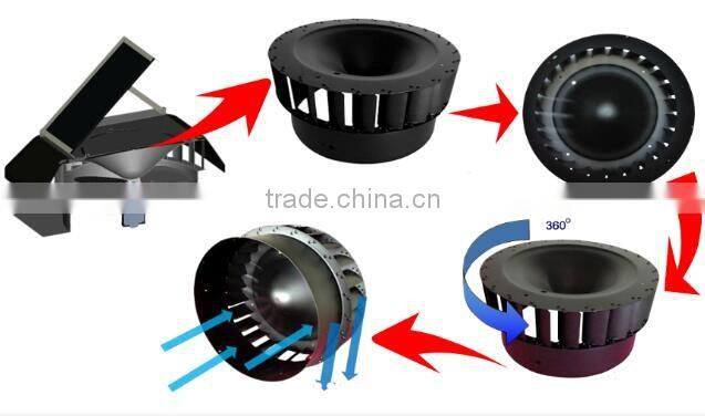 Our patent-designed turbine wind guide blades structure is adopted in this ventilator.Following a 360-degree swirl ventilation mode and being free from outside airstream interferes, it can work efficiently in sunny days to exhaust out the indoor heat & smell and not let any exterior air going in, so as to keep the living & working environment always clean & fresh.In raining windy days, this air draft design can also efficiently prevent the rains or winds from flowing backward.
