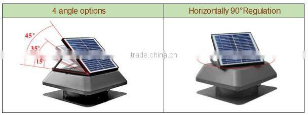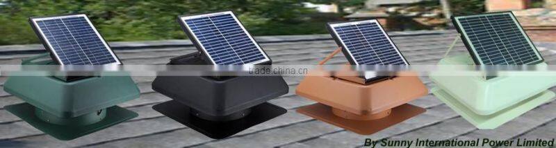 Roof Mounted Solar Exhaust fans Like traditional attic fans,removes hot, stagnant air from your attic and allows your air conditioner to more efficiently cool the house. What makes our solar fan even better is that it requires no public electricity, that means not only are the attic fan's operational costs zero but your installation works are easier. Our solar fans blend seamlessly into your roofine and are extremely quiet, if it wasn't for the energy savings, you might forget they are there.