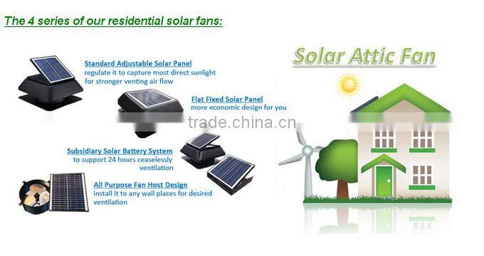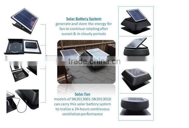 3) Connecting solar battery system or dual power AC adapter system to support the solar fan works 24 hours all day round nonstop