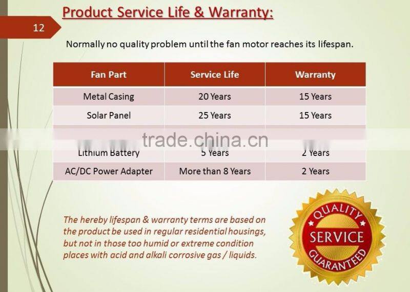 Add SOLAR BATTERY SYSTEM or AC/DC POWER ADAPTER to support solar fan runs nonstop at night