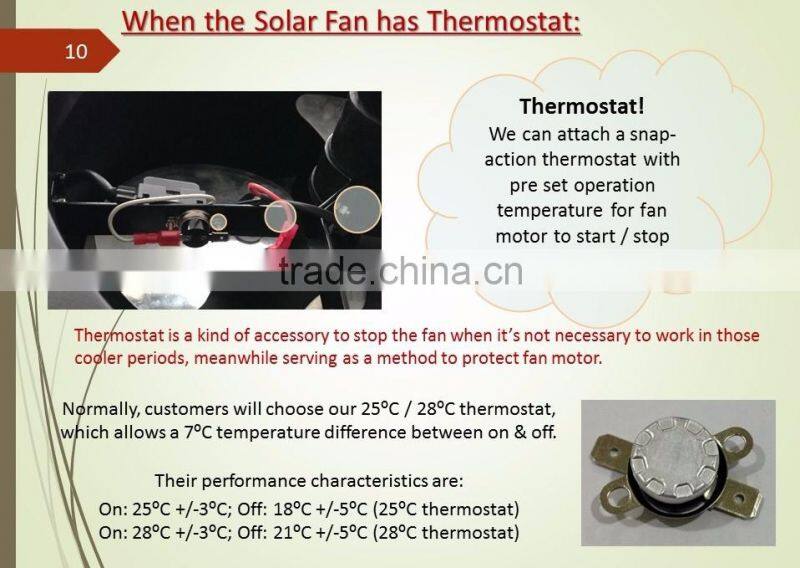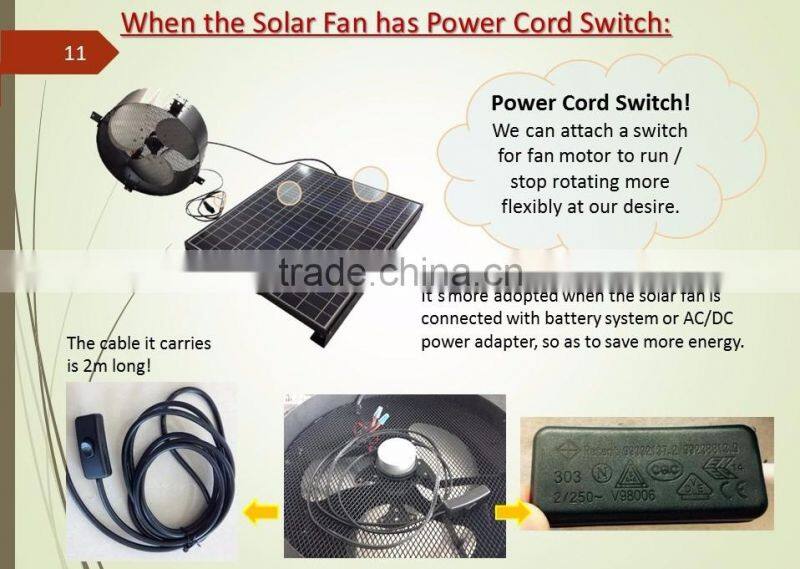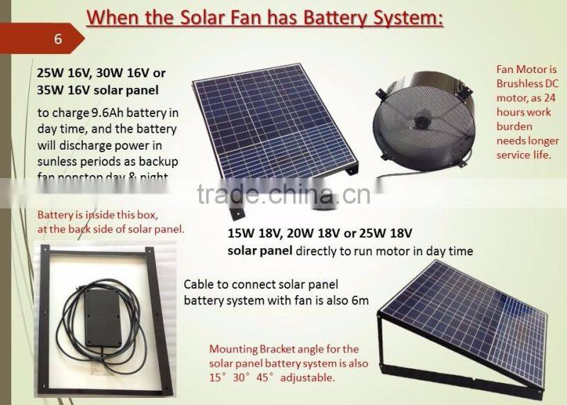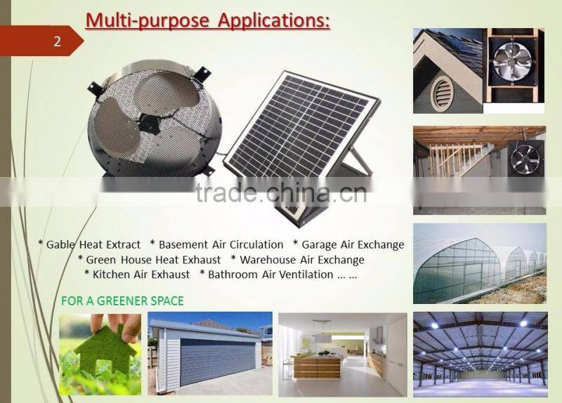 When comparing to a roof mounted solar attic fan, such kind of solar gable fan is of broader applications, since its fan body is separated from solar panel and can be mounted into any building walls.