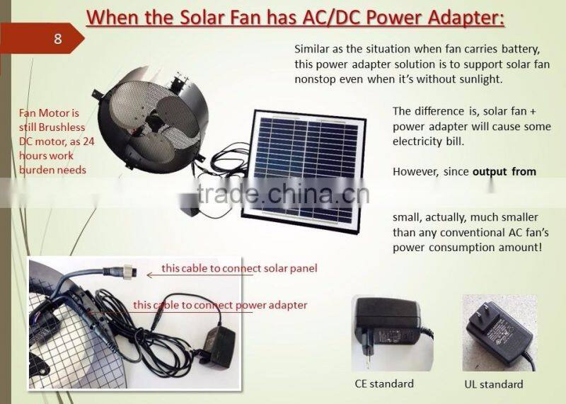 solar fan + AC/DC power adapter will ask you to pay for some energy consumption costs