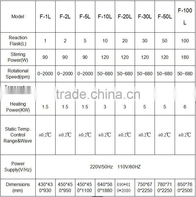 3.Circulating water/oil bath, heating mantle can supply the heating origin; Cooling mode machine:cool chiller, convenient and practical