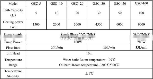 This product uses stainless steel material for the bath, and selects high quality plate electrostatic spray plastic for shell. Heating ring is placed in the oil, heat fast and efficiently. It is also energy-saving PID accurate temperature control. An efficient circulating pump is placed under bath which can circulate hot oil/water with others instrument such as a double layer glass reactor.