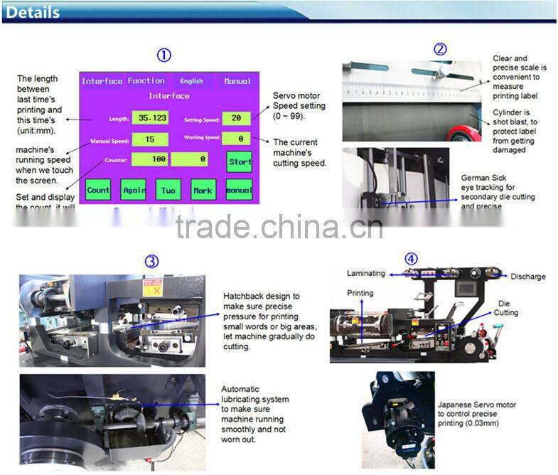 1. Simple operation, high speed and flexible, accurate register, can finish laminating,die cutting,cutter(reminder) together.