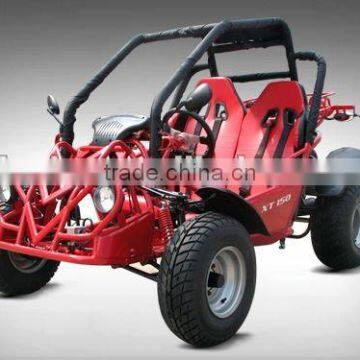 ENGINE INFO Engine type : single cylinder water-cooled 4-stroke Engine brand : * Displacement : 150cc Cooling : Air cooled Max horsepowe : 8.05hp/7500r/min Max torque : 8.3n.m/6000r/min Bore*stroke : 2.26*2.28 inch Max speed : 40 miles/h Climbing ability : ≥30° Ignition : C.D.I Starting system : Electric Battery : 12V7A Carburetor brand : PD24J Engine oil : SAE15W/40SF Gear oil : 85W/40 CHASSIS ETC Clutch : AUTOMATIC Transmission : * Driveline : CHAIN-drive Driving wheel : Rear wheel drive Suspension,front/rear : Double arm-swing/ single arm Brakes,front/rear : Disc Brake operation : Hand +foot Tires,front/rear : 21×7-10/22×11-10 Fuel capacity/type : 2.5gal Weight,G.W./N.W : 550/484lbs Max load : 330lbs DIMENSIONS Wheelbase : 63inch OA L*W*H : 91.7×58.2×58.2 inch Height to seat : 17.7inch Min ground clearance : 9.8inch Carton size : 90.6×52×30.7 inch Shipping info : 27pcs/40HQ