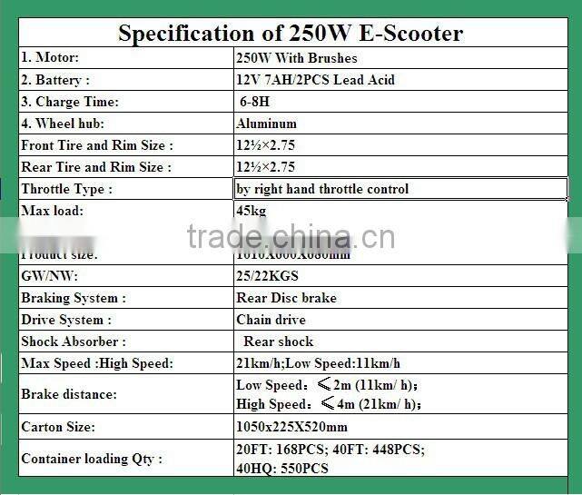 250W electric kids motorcycle off road electric mobility scooter FSD250DH (2015 New)