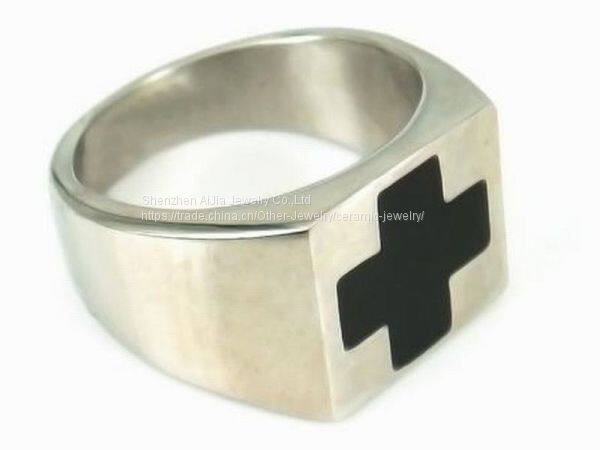 Black Gemstone Titanium Steel Ring Jewerly Silver For MensNegotiableMOQ: 50 Pieces