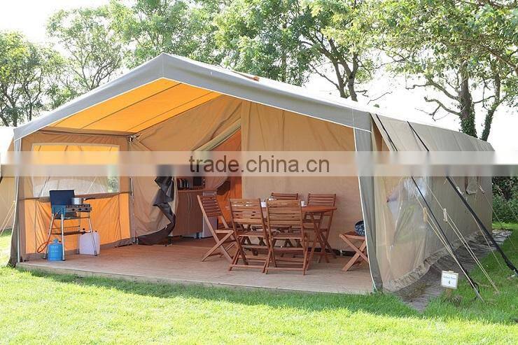 1. Overhanging cotton canvas roof for rain protection 2. 3 rooms and 6 windows with mosquito netting 3. Each bedroom has its own zip fastened door 4. Heavy duty guy ropes and pegs | |