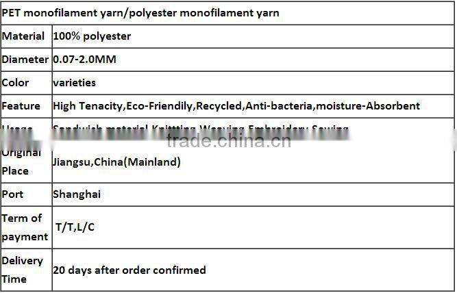 0.10mm 100D polyester pet pes monofilament yarn for sandwich mesh, polyester monofilament for 3D air mesh farbic