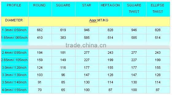Profile | Round, Square, Star, Trigon, Hexagon, Heptagon, Square Twist, Ellipse Twist, Star Twist Beads, Dual Power, Saw Blade |