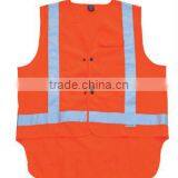 Reflective Orange Vest With Waterproof Material ,Orange Warning Vest With Zipper ,reflective Warning Vest With Multi~pockets