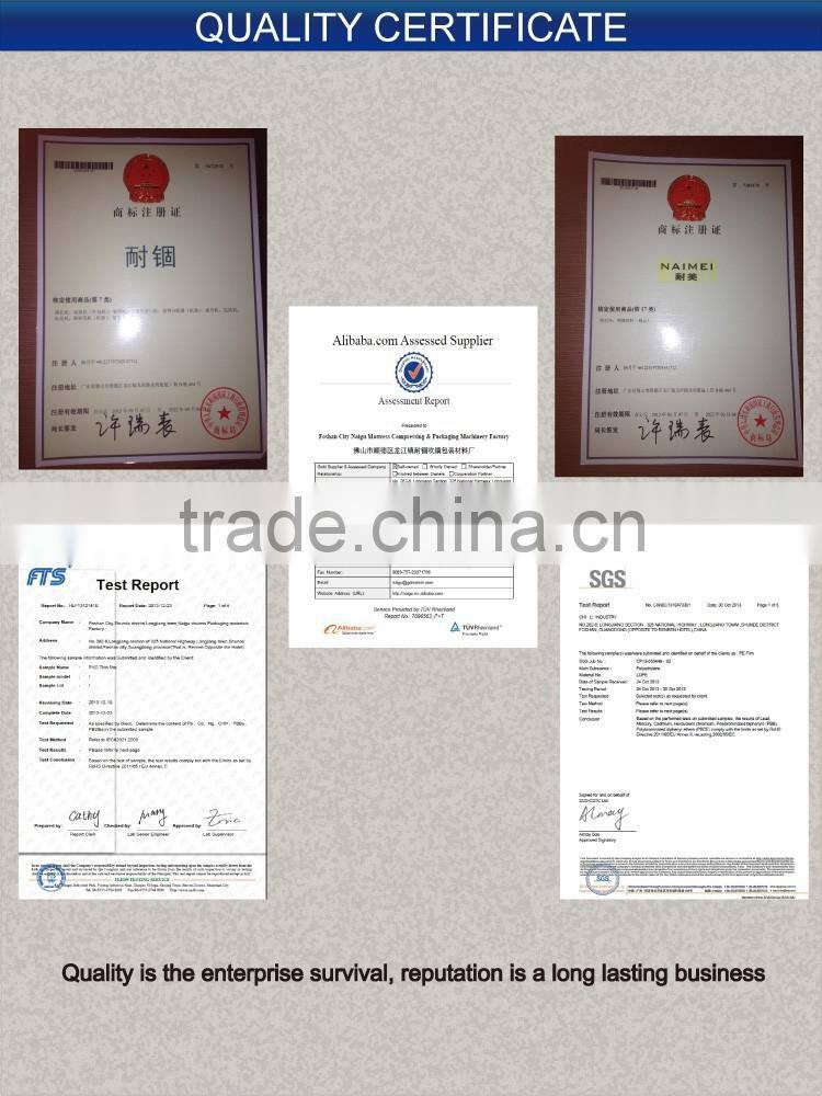 The roll type packaging film, the film has been made of a polymer fiber material, with the wide range use, good toughness, and self-adhesive characteristics, is widely used in the surface of tamper-proof packaging of the various kinds of furniture and electrical products and has a variety of specifications available for your choose.you can use this rolling material to make the packing bag you want. we have many kind of specification.