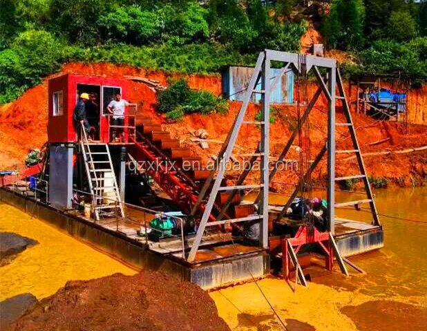 Bucket chain dredger can be equipped with ore mining machinery for gold selection or iron separation.The machinery has the features of automatic work,good extraction rate,high capacity.