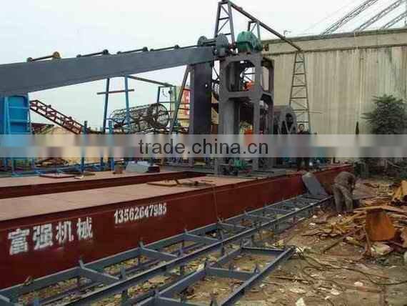 When dredging, put the lower end of the bucket bridge into some depth of the water, making the sand bucket touch the sand. Driven by the guide pulley on the upper end of the bucket bridge, the bucket chain operates continuously. It can dredge the sand by the mud bucket on the bucket chain. The dredged mud and sand are transported to the top of the bucket tower. After changed direction by guide pulley, the mud and sand in the bucket are put into mud well from the mud bucket under gravity of themselves. The mud and sand are discharged out of the ship board by the chute.