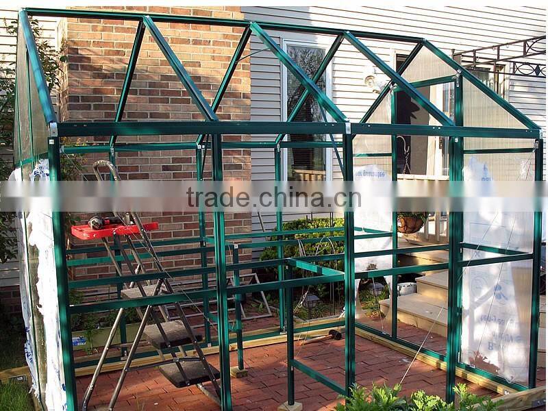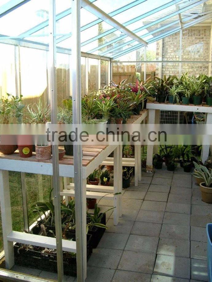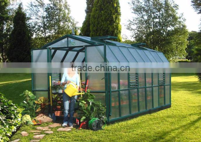 Garden greenhouse is usually built in the country yard, and mainly used for planting ornamental plants and vegetables,produced by 4mm, 6mm, 8mm,10mm thickness polycarbonate hollow sheets and aluminum alloy frames. Its size is usually small, so it is also called courtyard greenhouse or small greenhouse. Besides, the garden greenhouse is usually used in restaurant hall and corridor, villa front and back, and park for tourist watching and leisure, so it is also called leisure greenhouse.