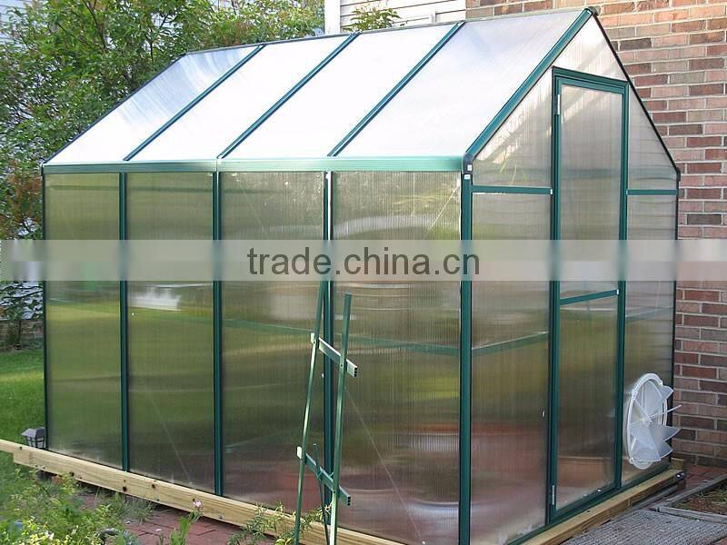 Garden greenhouse is usually built in the country yard, and mainly used for planting ornamental plants and vegetables,produced by 4mm, 6mm, 8mm,10mm thickness polycarbonate hollow sheets and aluminum alloy frames. Its size is usually small, so it is also called courtyard greenhouse or small greenhouse. Besides, the garden greenhouse is usually used in restaurant hall and corridor, villa front and back, and park for tourist watching and leisure, so it is also called leisure greenhouse.