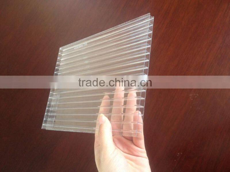 PC(Polycarbonate) sheet, is hollow type,double layers, hard and durable, anti-ultraviolet, can be available on the roof and the side of greenhouse.