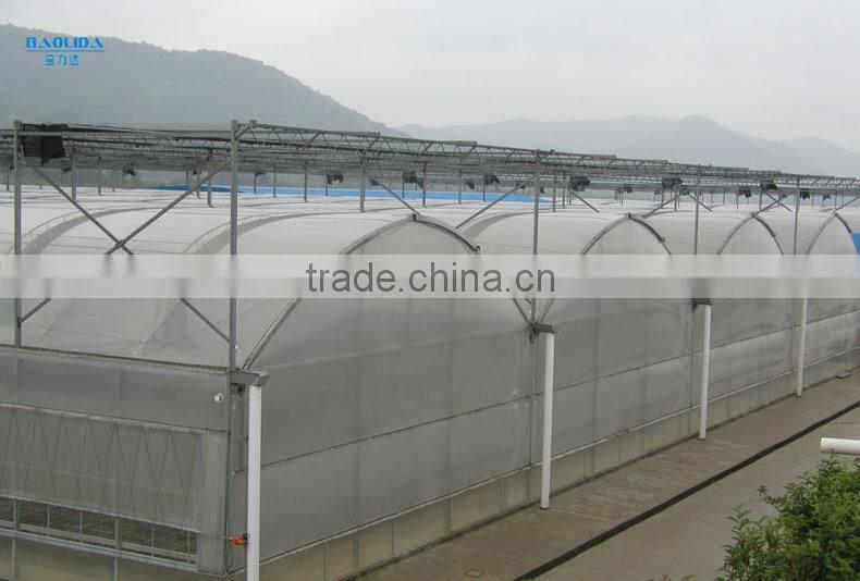Most multi-span plastic greenhouses are at 50% to 60 %, and the greenhouses which covered by sunlight panel light transmission rate is 75 % to 80%, own main glass greenhouse products can reach more than 85%.