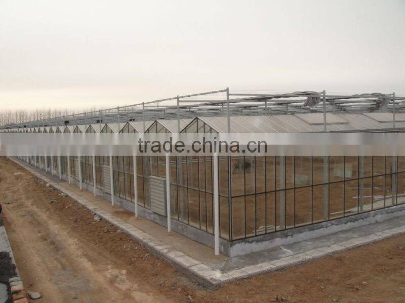 Glass greenhouse adopts hot-galvanized steel frame, the covering material commonly used 4-5mm high-quality float glass ortempered glass, double glazing: 4mm + 9mm + 4mm, 5mm + 6mm + 5mm Light transmittance greater than 90%, but also can choose the covering material according to customer requirements, the top of the greenhouse and surrounded by glass fixed special aluminum.