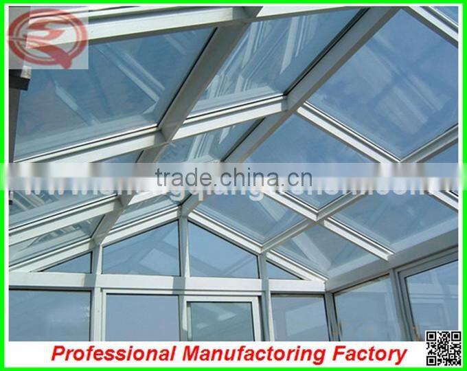 Glass greenhouse adopts hot-galvanized steel frame, the covering material commonly used 4-5mm high-quality float glass ortempered glass, double glazing: 4mm + 9mm + 4mm, 5mm + 6mm + 5mm Light transmittance greater than 90%, but also can choose the covering material according to customer requirements, the top of the greenhouse and surrounded by glass fixed special aluminum.