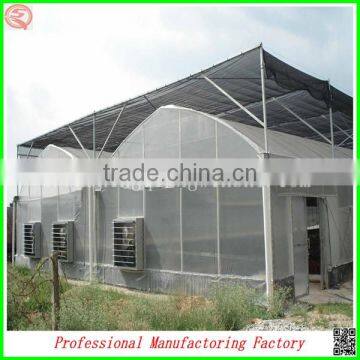 The greenhouse main steel structure adopts hot galvanized steel tubes and profiles; The greenhouse arounding covering materials adopt polycarbonate sheet, floatingglass,film(single,double). Configurations of the greenhouse: Outside shade system, Inside shade system, FanWet curtain system, Heating system, Seed bed, Automation control system. The system of greenhouse is centralised electric manual control.