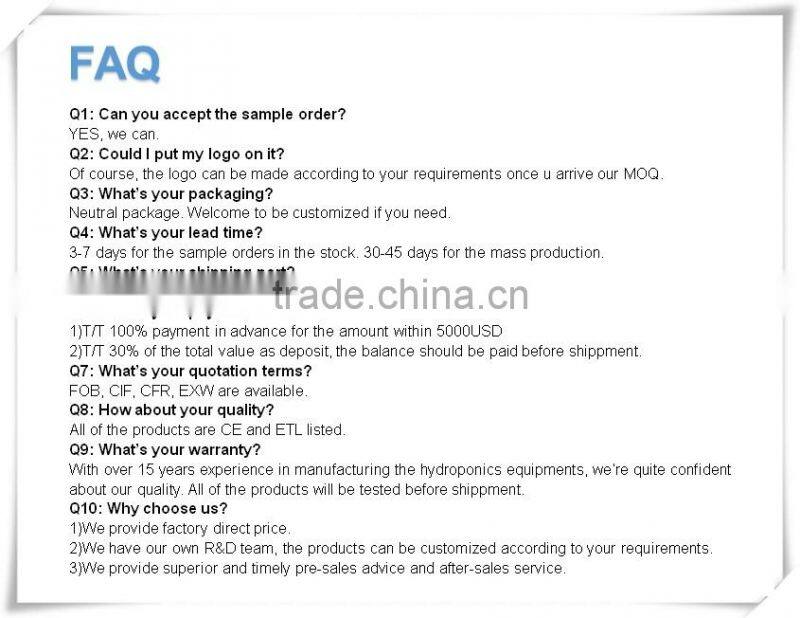 All of our products are CE and ETL approved. With more than 15 years experiences in the fields of hydroponics, we're playing a leading role in grow light industries both at home and abroad.