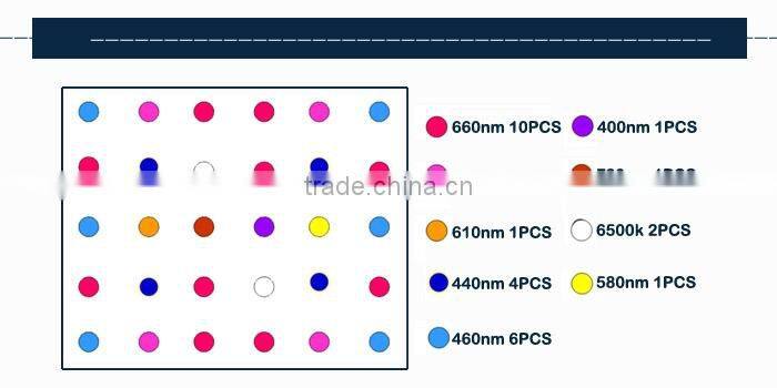 Red 630 ~660nm: Best for photosynthesis and photoperiodism. Blue 460nm: The Chlorophyll and Carotenoid need it much, good for the photosynthesis.