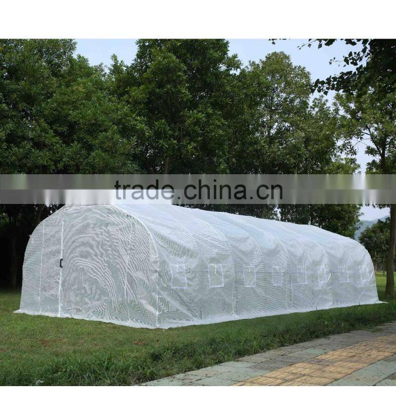 This high quality, large, walk-in greenhouse is manufactured using a heavy duty 25mm gauge galvanised steel tube frame, much stronger than others on Alibaba! Please note that the frame features a full ground bar set up, diagonal storm bracing bars, longitudinal roof bar construction. The one-piece rip-stop cover is UV protected and features 1 zippered doors and 8 side vents for enhanced ventilation. Great for starting or protecting plants and flowers, it's made of a 100% waterproof material.Transparent poly material allow maximum solar performance for plant, keep a warmer temperature. Reinforced PE leno make the cover stronger than normal poly material. Metal doors and 8 exhaust vents are designed for cross ventilation and venting on hot days. Fully closed cover maintains high humidity levels for growing tropical plants, vegetables, fruiting plants and herbs.