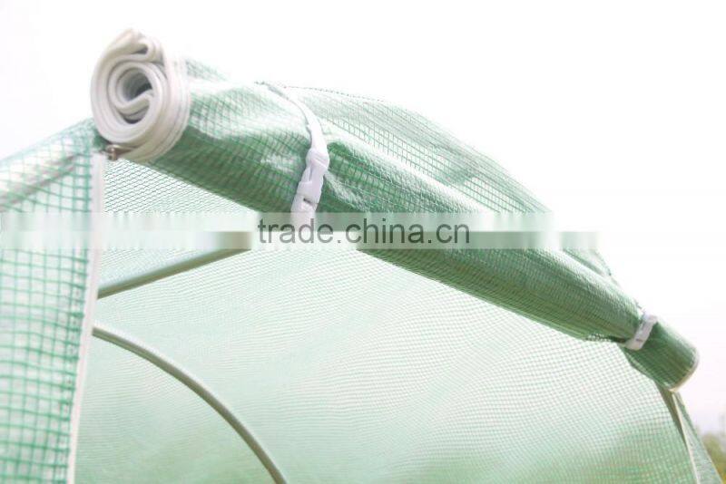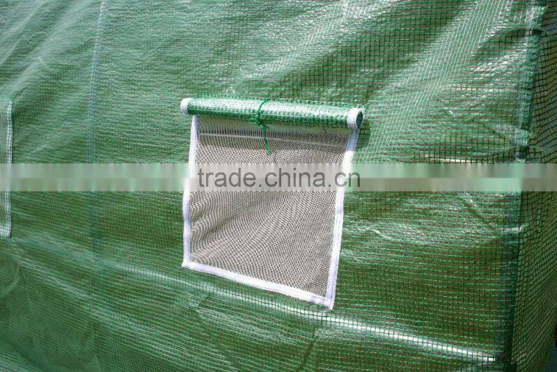 This high quality, large, walk-in greenhouse is manufactured using a heavy duty 25mm gauge galvanised steel tube frame, much stronger than others on Alibaba! Please note that the frame features a full ground bar set up, diagonal storm bracing bars, longitudinal roof bar construction. The one-piece rip-stop cover is UV protected and features 1 zippered doors and 6 side vents for enhanced ventilation. Great for starting or protecting plants and flowers, it's made of a 100% waterproof material.Transparent poly material allow maximum solar performance for plant, keep a warmer temperature. Reinforced PE leno make the cover stronger than normal poly material. Zippered doors and 6 exhaust vents are designed for cross ventilation and venting on hot days. Fully closed cover maintains high humidity levels for growing tropical plants, vegetables, fruiting plants and herbs.