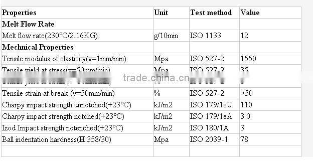 1)Injection: valve, fittings, crates, automotive, closure, appliances, kettles, food containers, housewares, toys, non-prefilled syringe.