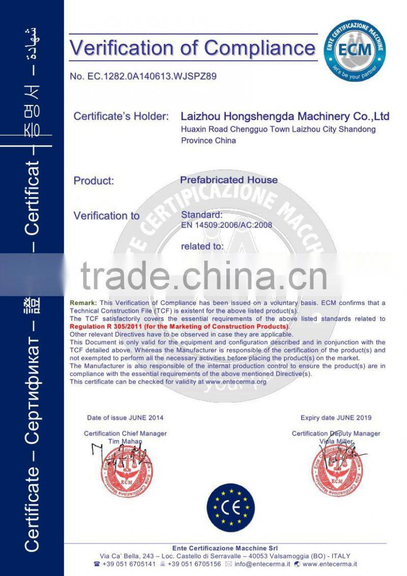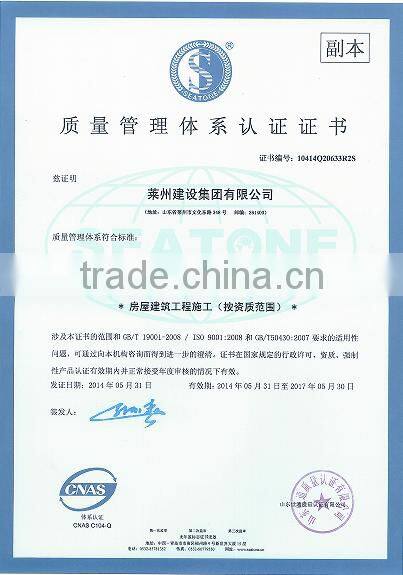 we have pasted CE,ISO900:2008 certificate,as govenment owned company before and with own factory,our buildings have been sold over 50 countries for good quality and competitive price
