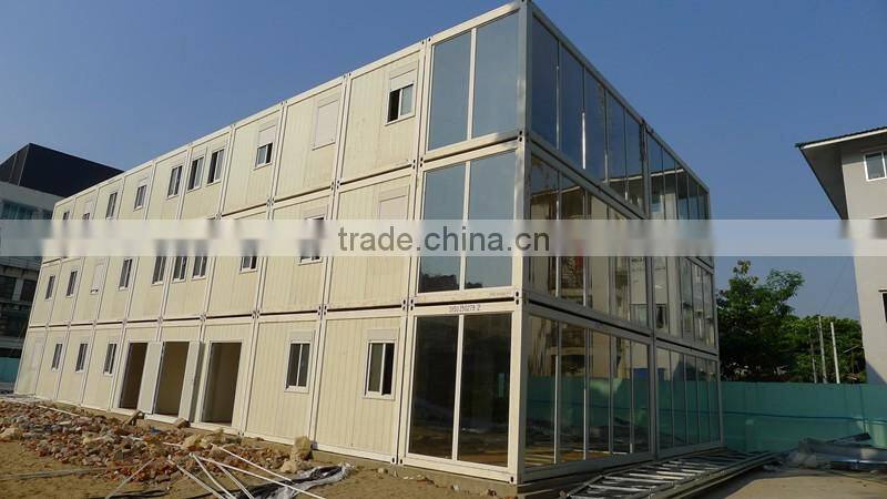Our prefabricated container house is designed and developed according to the ISO standard shipping container,which can be flat packed and transported as SOC.with the module design,the prefab container house can be built flexibly according to practical demand.partitions can be added any place needed to make it bedroom,bathroom etc.several units can be combined together for a larger room,such as VIP living container house,container office,container apartment,mobile clinic,mobile kitchen container,container restaurant,container storage,container shop,container garage,container hotel,container toilet etc.besides,container house can be built to 2-3 floors,combined and strengthened with connection bolts.now flat pack container house has been more and more applied to hotel,model,labor camp,campus accommodation and other buildings.