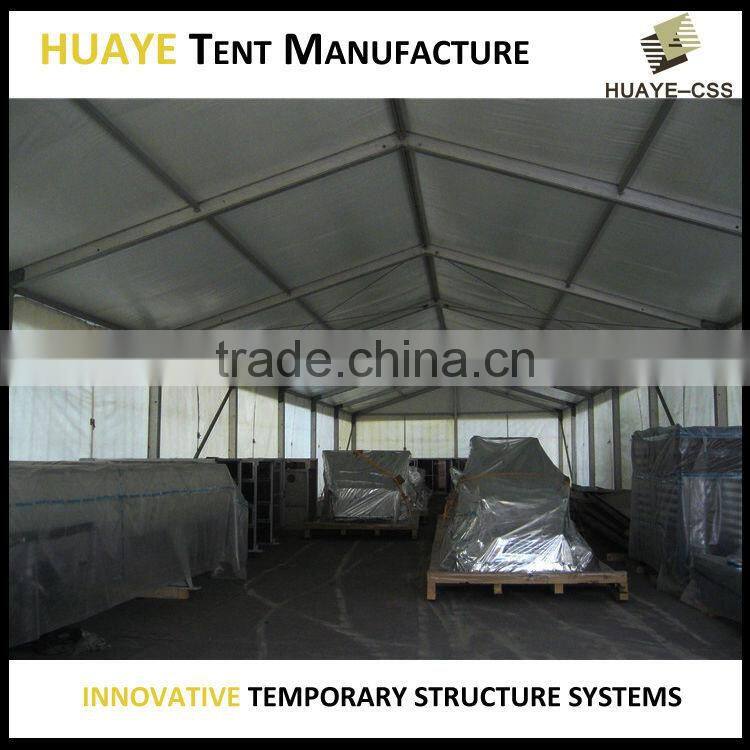 Huaye’s line of Pavilion Tents are our most popular. They are the go-to structure for weddings, parties, and corporate events. The Standard Pavilion Tents are the smaller of 3 series. They come in widths of 10, 12, and 15 meters and can be as long as you wish. The 10-meter and 15-meter Pavilion Tents also offer a choice of “Low” (3.24m) and “High” (3.84m) variations. One of the major applications is to be a temporary warehouse, it can be appied as a temp workshop as well.