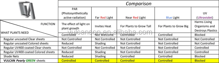 VULCAN Polycarbonate Corrugated PEARLY GREEN material was developed specially for living organisms and general purposes.