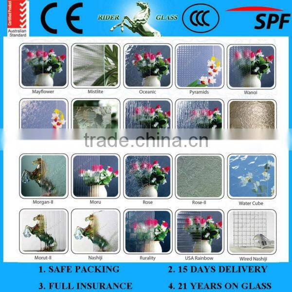 Rider Glass - 3.5mm 4.5mm high quality Clear Figured Glass with CE and ISO9001