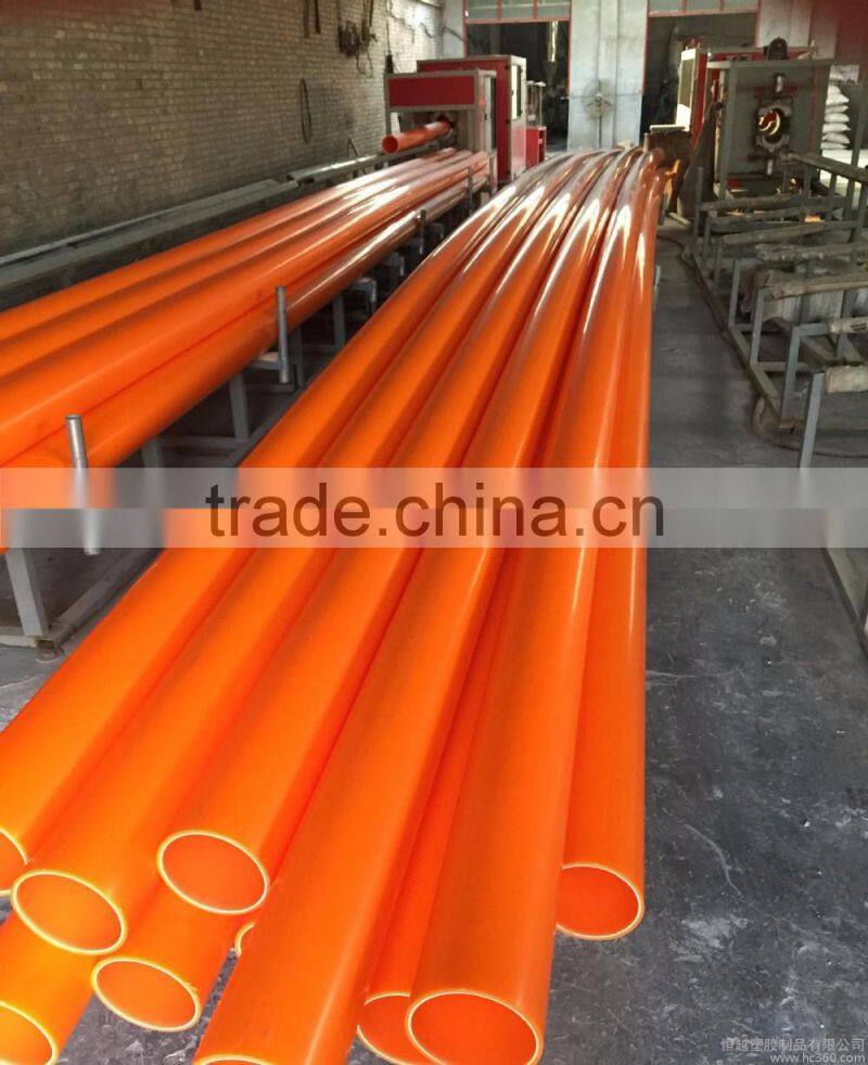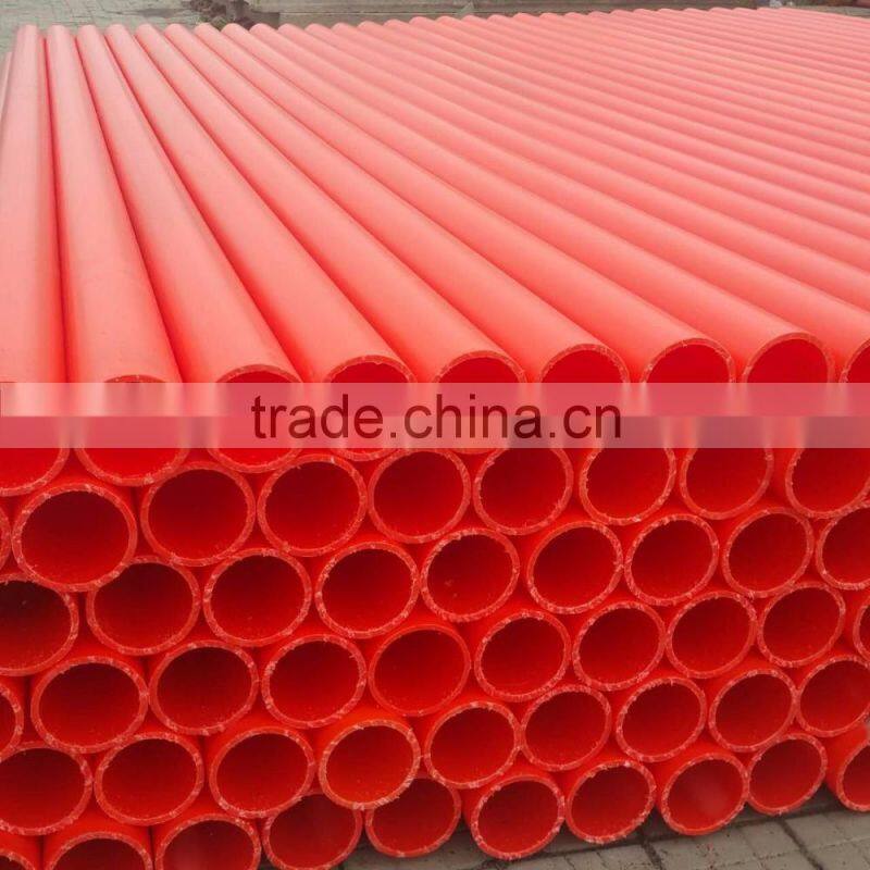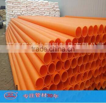 MPP electric power special pipe, mainly used for power cable laying and guidance and protection of the role of the cable. Can replace the current power system used in steel pipe and asbestos cement pipes, etc.. The product has the advantages of high strength, high temperature resistance, aging resistance, no eddy current phenomenon, small friction coefficient, convenient construction, no need of pouring concrete protective layer, reducing the cost of the project, etc..