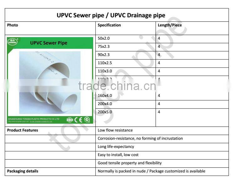 Wholesale price for High Quality DN110mm UPVC sewer pipe , Welcome to inquiry.