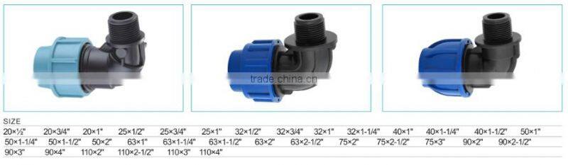 China Factory pp Compression Fitting Price List Female Thread 90 Degree Elbow
