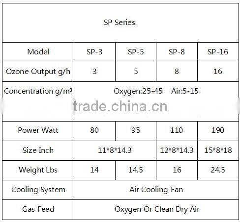The SP series feature units designed specifically for swimming pool or large water treatment applications. These units are designed with higher ozone outputs that correspond to the amount of water being treated. Our SP model outputs 3/5/8/16 g/h and is ideal for water applications (or pools) up to 25,000-100,000 gallons or 94,000-380,000 liters.