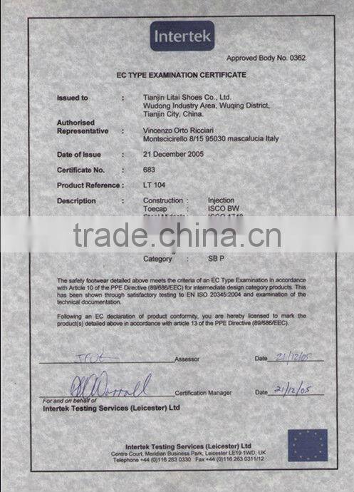 | Certificate | CE EN ISO20345:2004 & ISO9001:2008