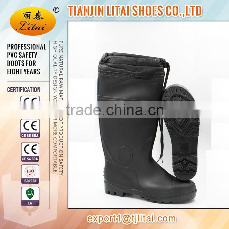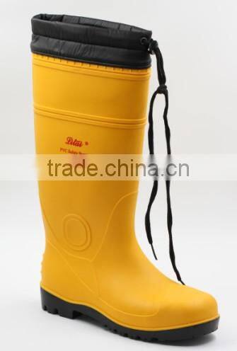 " Items: pvc boot with steel toe--LT-107 Our sturdy 15” waterproof boots give you good traction, seamless construction and an inner lining to help you get the job done comfortably. Fits over socks. Also available with Steel Toe.