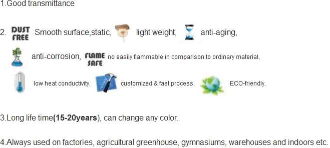 Frp sheet material is very high, a collision will quickly recover shape, not leaving scratches, and depression. This material is easy to clean and not easy to leave dirt. The color of the plate can be customized according to the needs.The antioxidant properties of the sheet is good, long service life.,The normal use of the conditions for about 20 years.