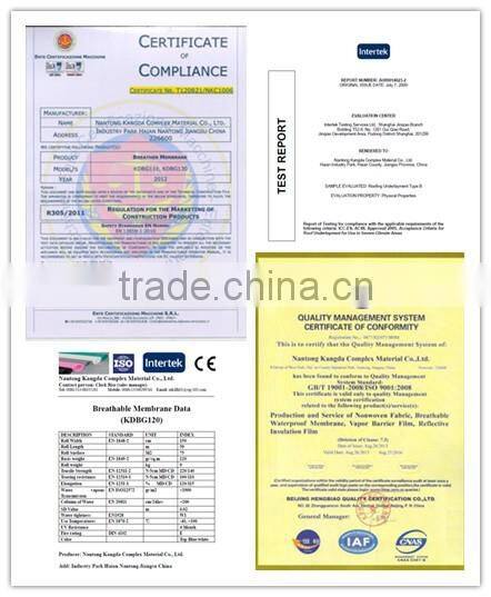 Nantong Kangda Complex Material Co., LTD. is a Chinese-foreign joint venture company. Based on its international technology, KDB produces breathable waterproof membranes which have already been approved by domestic test and American ICC certificate. Those products are exported to Europe, North America, Southeast Asia and many other countries and areas which are widely used and provide solutions to the people who need energy saving and breathability on construction.