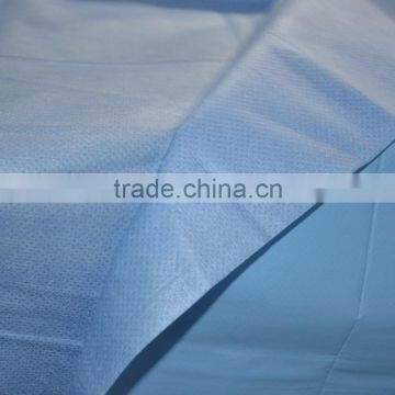 PE film coated SMS nonwoven fabric, PE film can be any color, blue is always the frequently choice. PE film directly laminated with