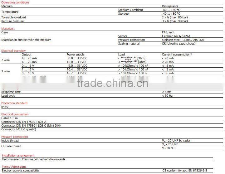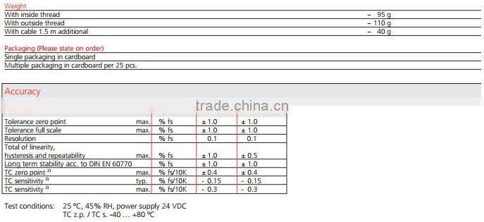 1.Type 506 pressure transmitters. 2.Brand: Huba 3.High resistance to extreme temperatures 4.Robust ceramic sensor technologySpecification: