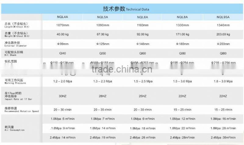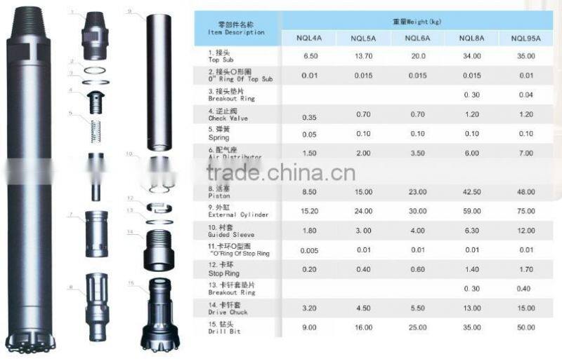 High Air Pressure Rock Drilling DTH Hammer QL40,QL50,QL60,QL80,QL90 :