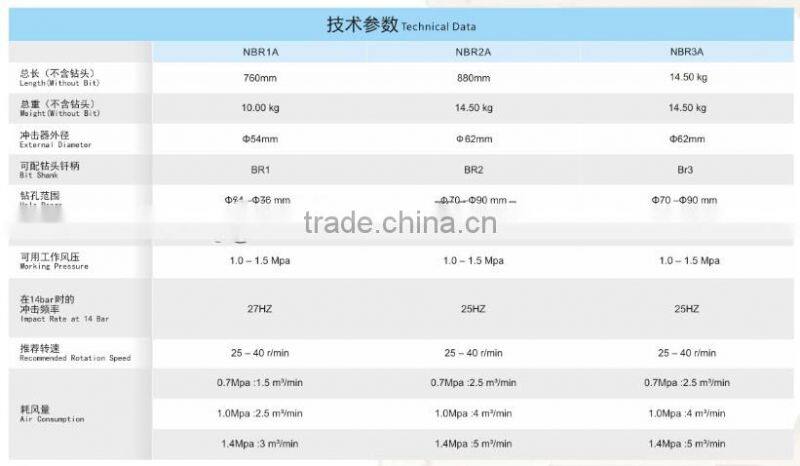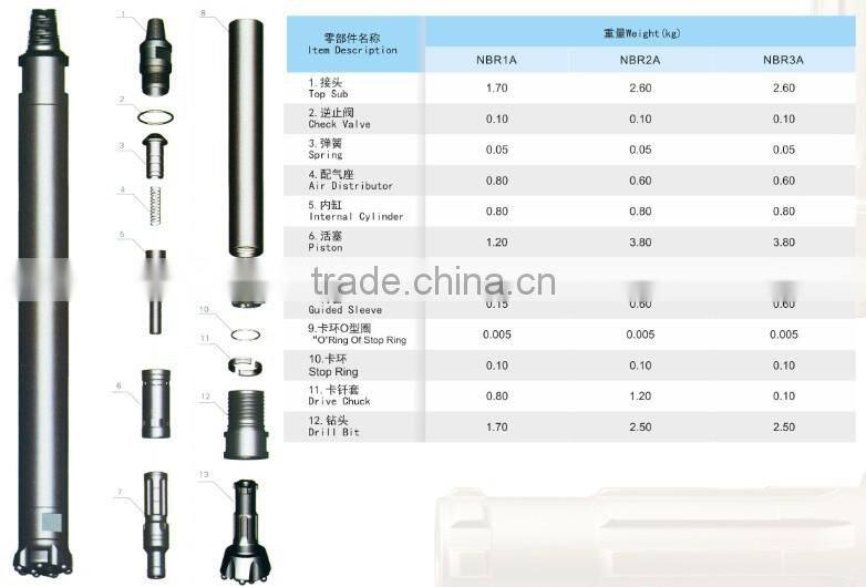 NBR Series DTH Hammers are designed to operate efficiently at low air pressures and medium air pressures, using BR series bits.